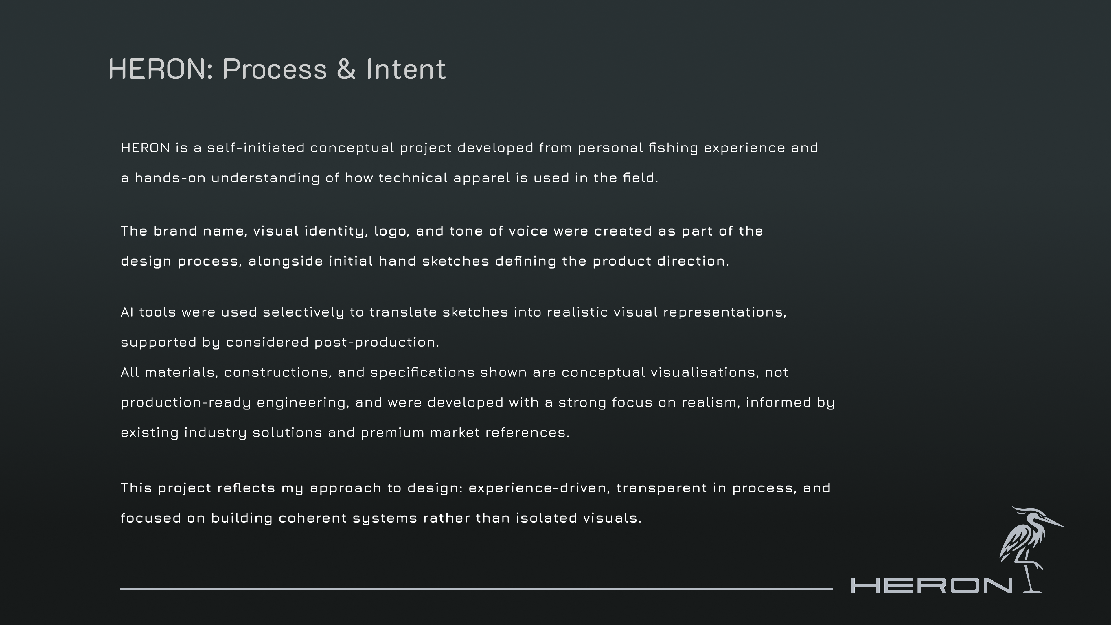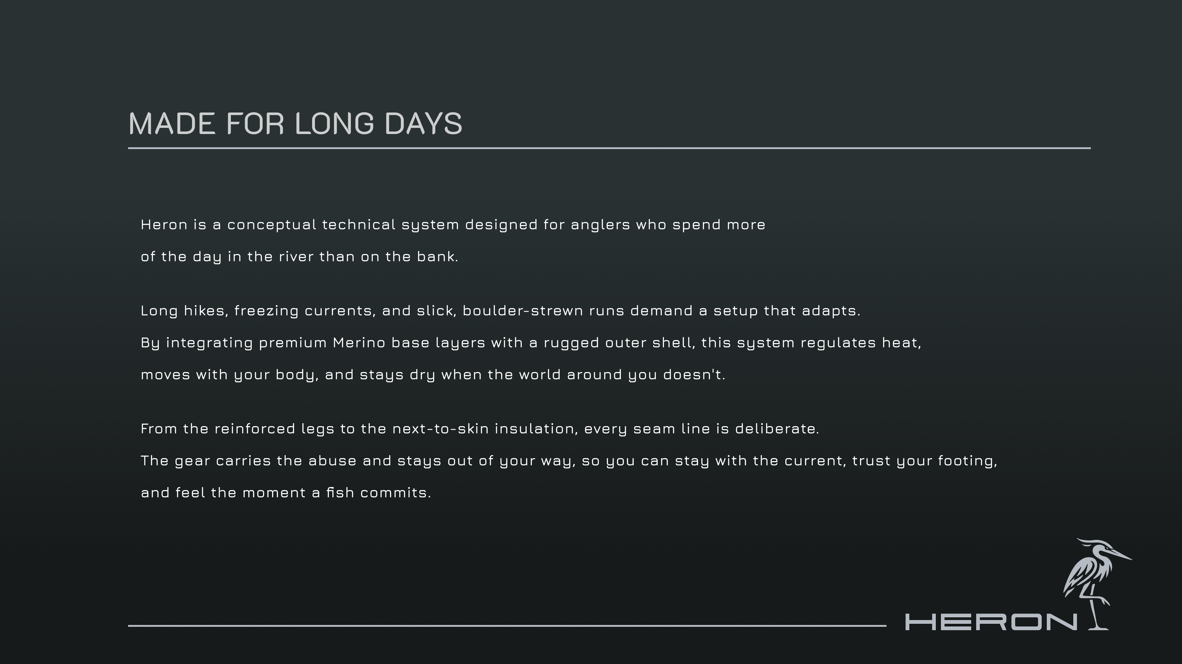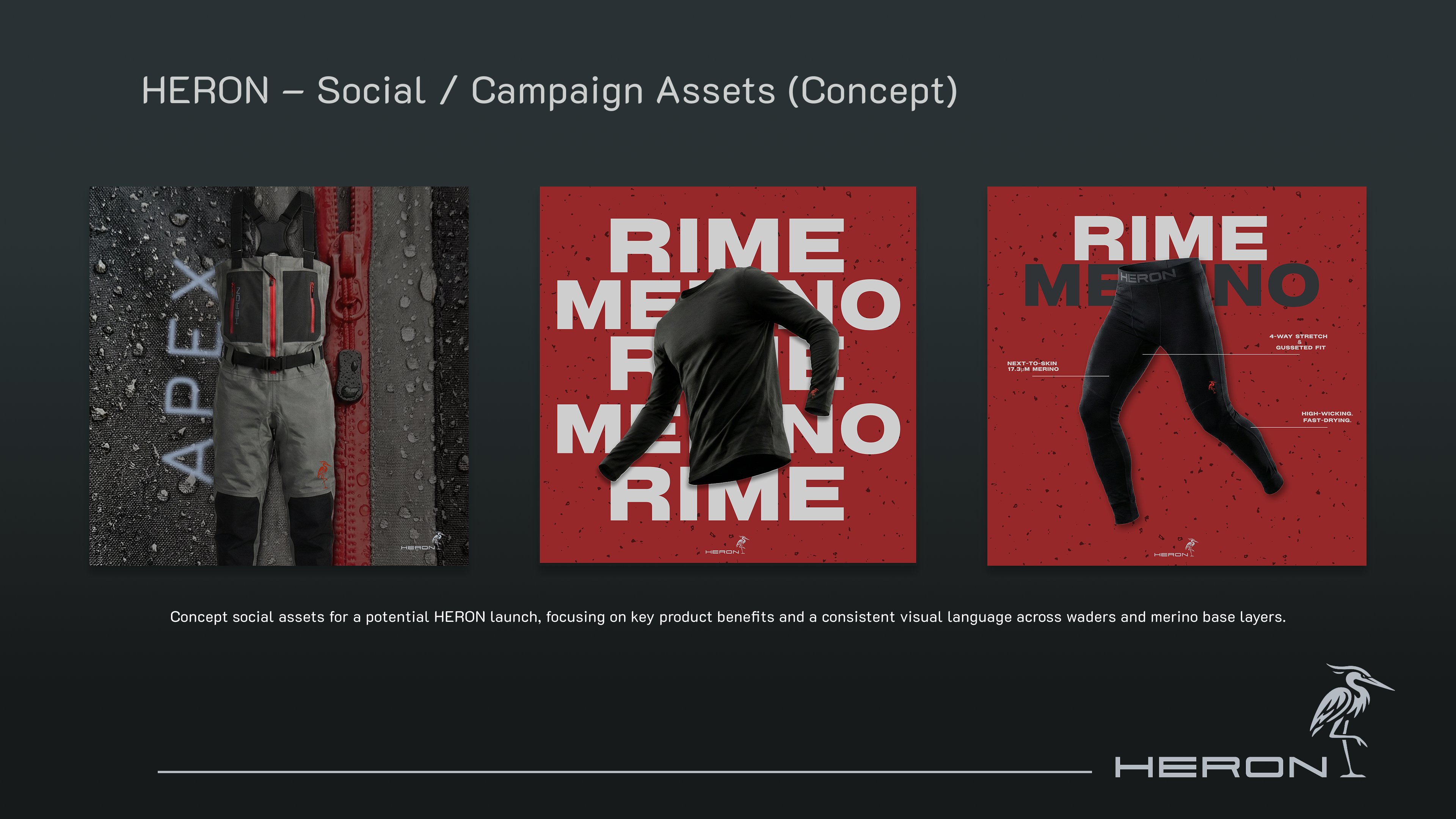 Conceptual project exploring technical waders and merino layering systems. My role: translating field experience into user‑focused feature maps and visual direction on top of existing technical solutions.